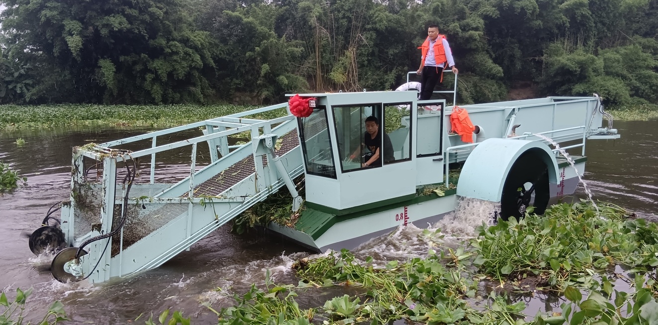 廣西玉林九洲江管委會購買的DFSHL110型全自動水葫蘆打撈船